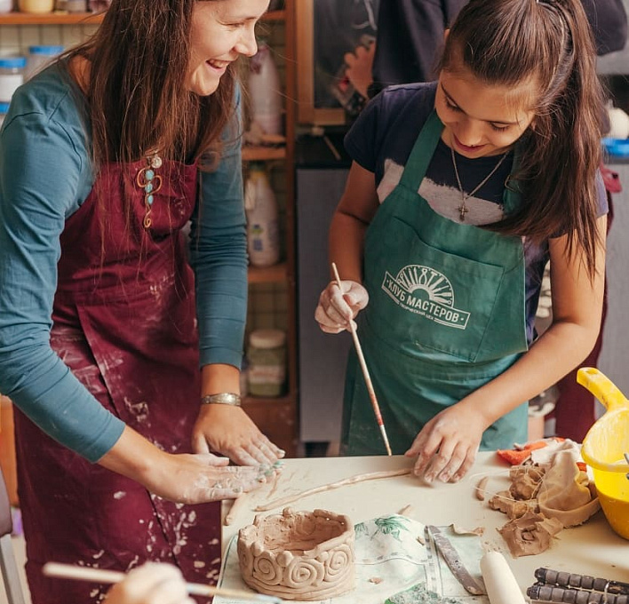 Погрузитесь в процесс создания керамики своими руками. Опытные мастера помогут вам освоить гончарный круг и создать уникальное изделие, которое вы заберёте с собой.