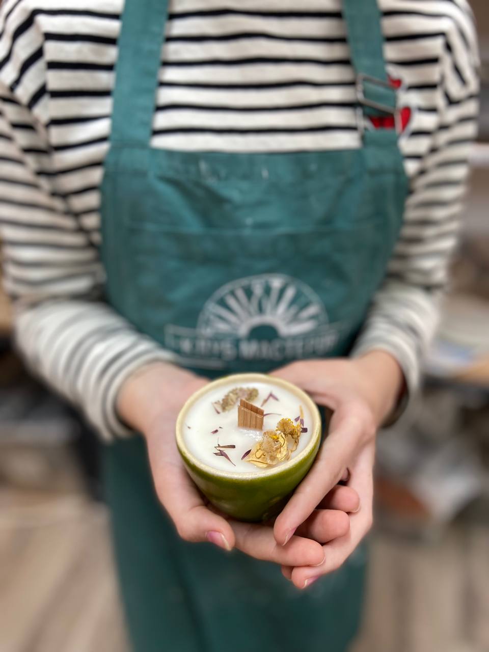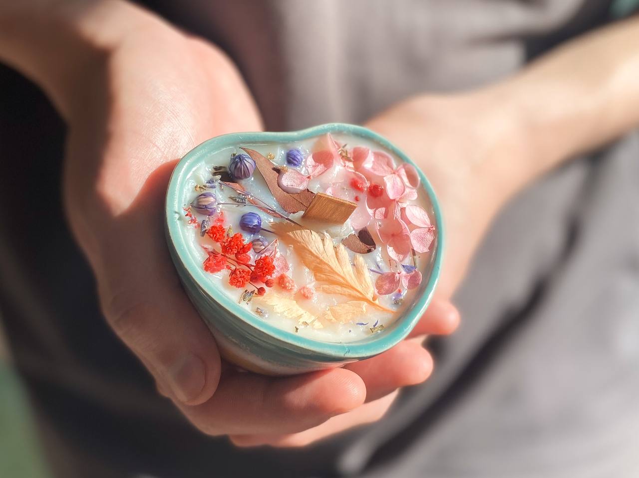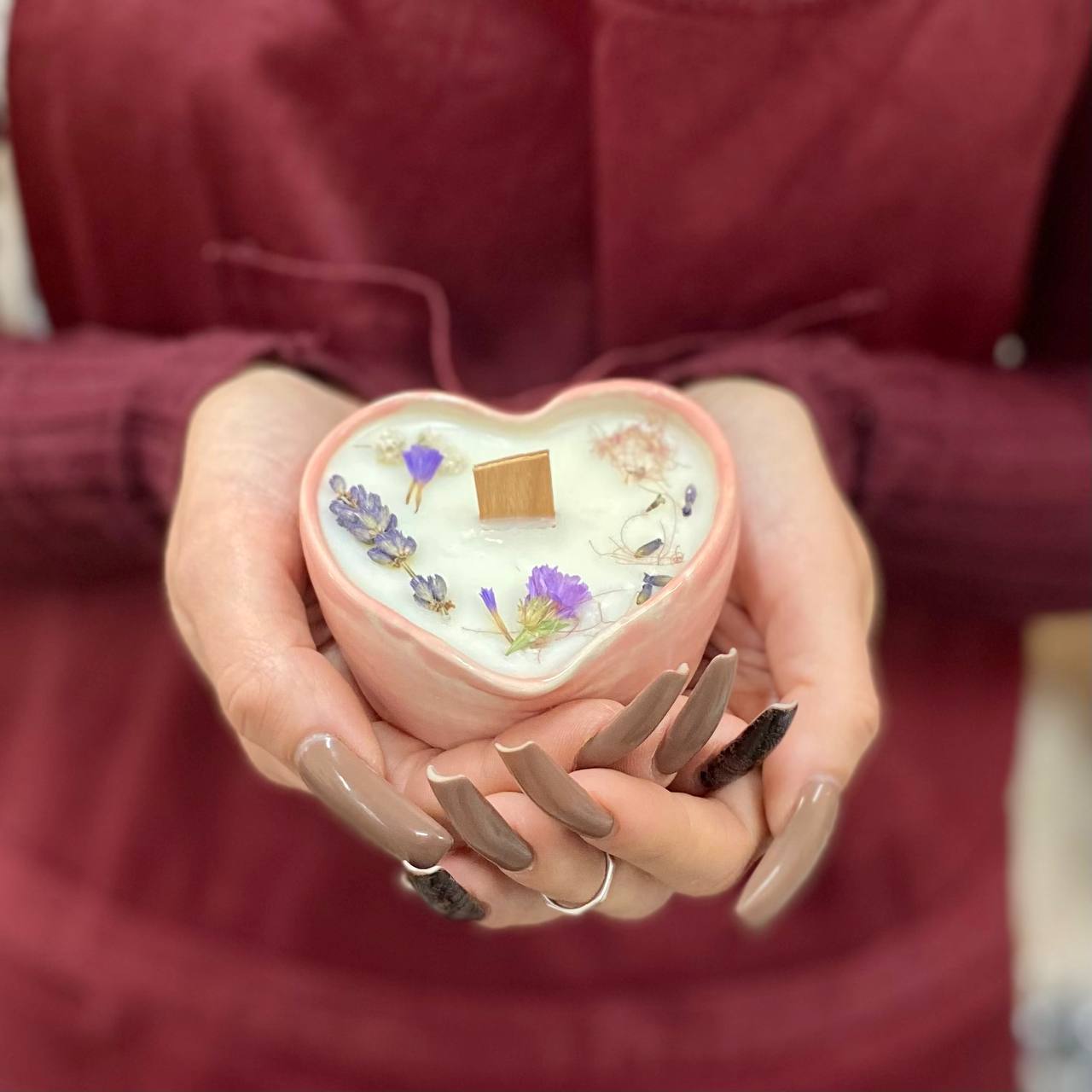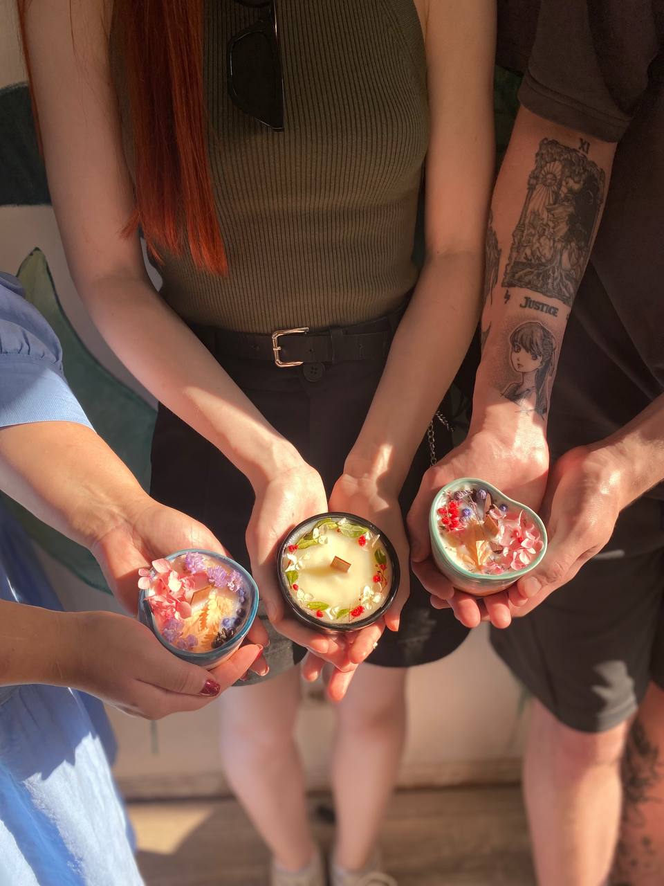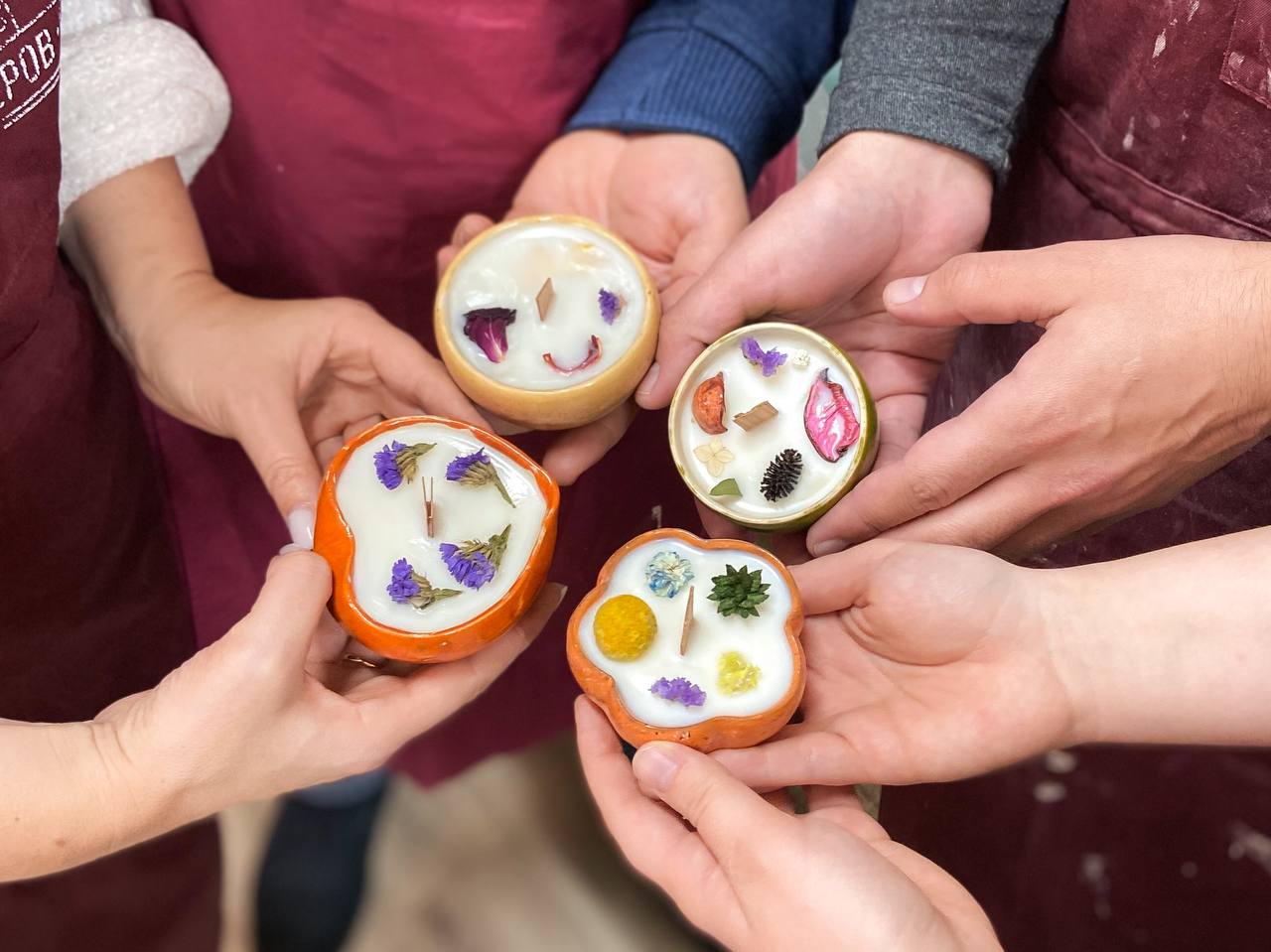 Мастер-класс начнется с выбора формы вашей будущей свечи. Каждый участник выбирает понравившуюся форму для свечи, заранее изготовленную нашими мастерами на гончарном круге. Мастер-класс проводится с использованием соевого воска, который является экологически чистым и безопасным материалом. Преимущества соевого воска: • Долгое горение и чистое пламя. • Не выделяет токсичных веществ при горении. • Легко окрашивается и ароматизируется. После выбора формы будущей свечи каждый участник мастер-класса самостоятельно закрепляет деревянный фитиль в выбранной форме. Преимущества деревянного фитиля: • Создает приятный треск при горении, напоминающий звук камина. • Обеспечивает равномерное горение и ароматизацию. После закрепления фитиля участники самостоятельно рассчитывают необходимое количество воска для своих форм и переплавляют соевый воск, подготавливая его для заливки. В нашей мастерской представлено до 10 различных видов ароматных отдушек, из которых участники могут выбрать по своему вкусу аромат своей будущей свечи. Отдушка, выбранная участником, смешивается с расплавленным воском. После того как воск был смешан с выбранной отдушкой, полученную массу участники заливают в выбранные формы. Для застывания воску требуется около 20 минут; в это время участники мастер-класса могут выпить чай или кофе и выбрать декор для своих свечей. После застывания воска участники приступают к декорированию своих свечей по желанию, добавляя индивидуальные штрихи. По завершении мастер-класса каждый участник сможет сразу забрать свою готовую свечу объемом 100-150 мл.