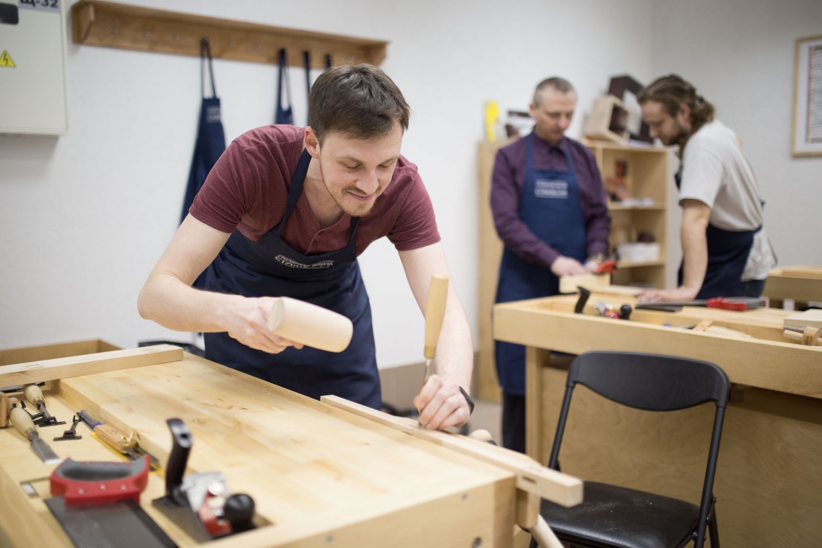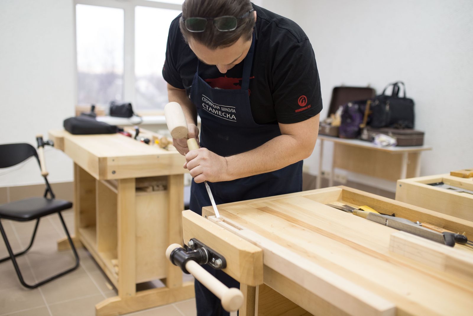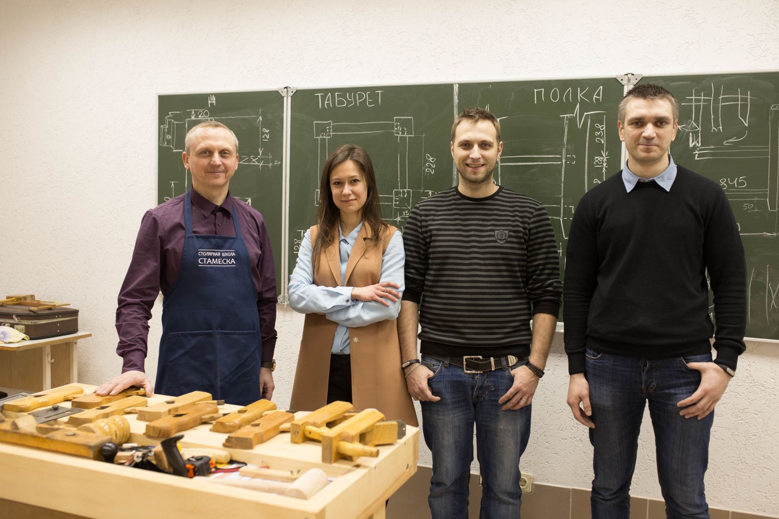 Всего в команде школы пять человек: я, Ольга, Дмитрий, Андрей и Юрий Владимирович. Ольга занимается административными вопросами и рекламой, Юрий Владимирович – преподаватель курса «Классическое столярное дело», столяр с тридцатилетним стажем из них 12 лет преподает. Дмитрий, Андрей и я хорошо разбираемся в различных сферах столярного дела.