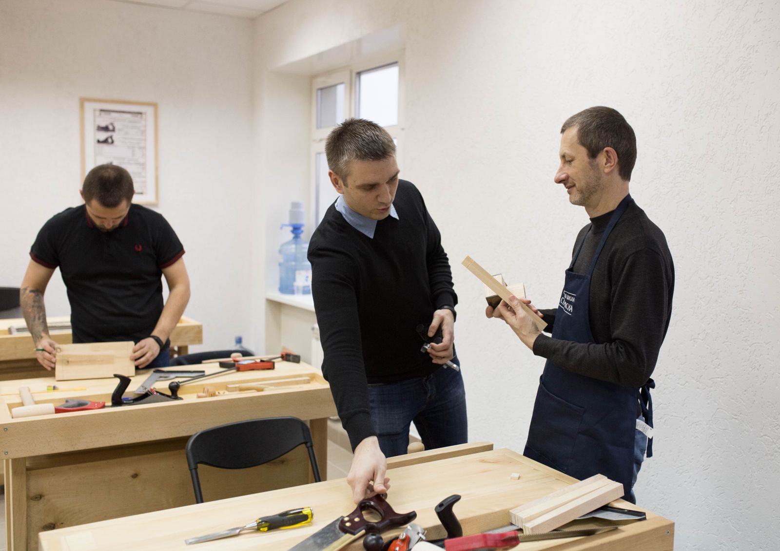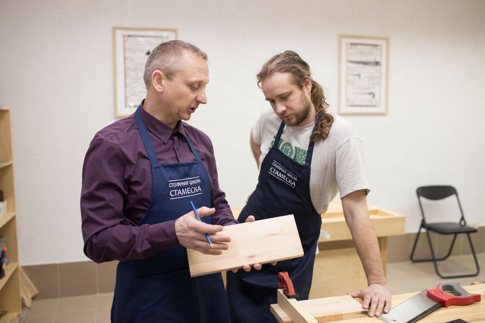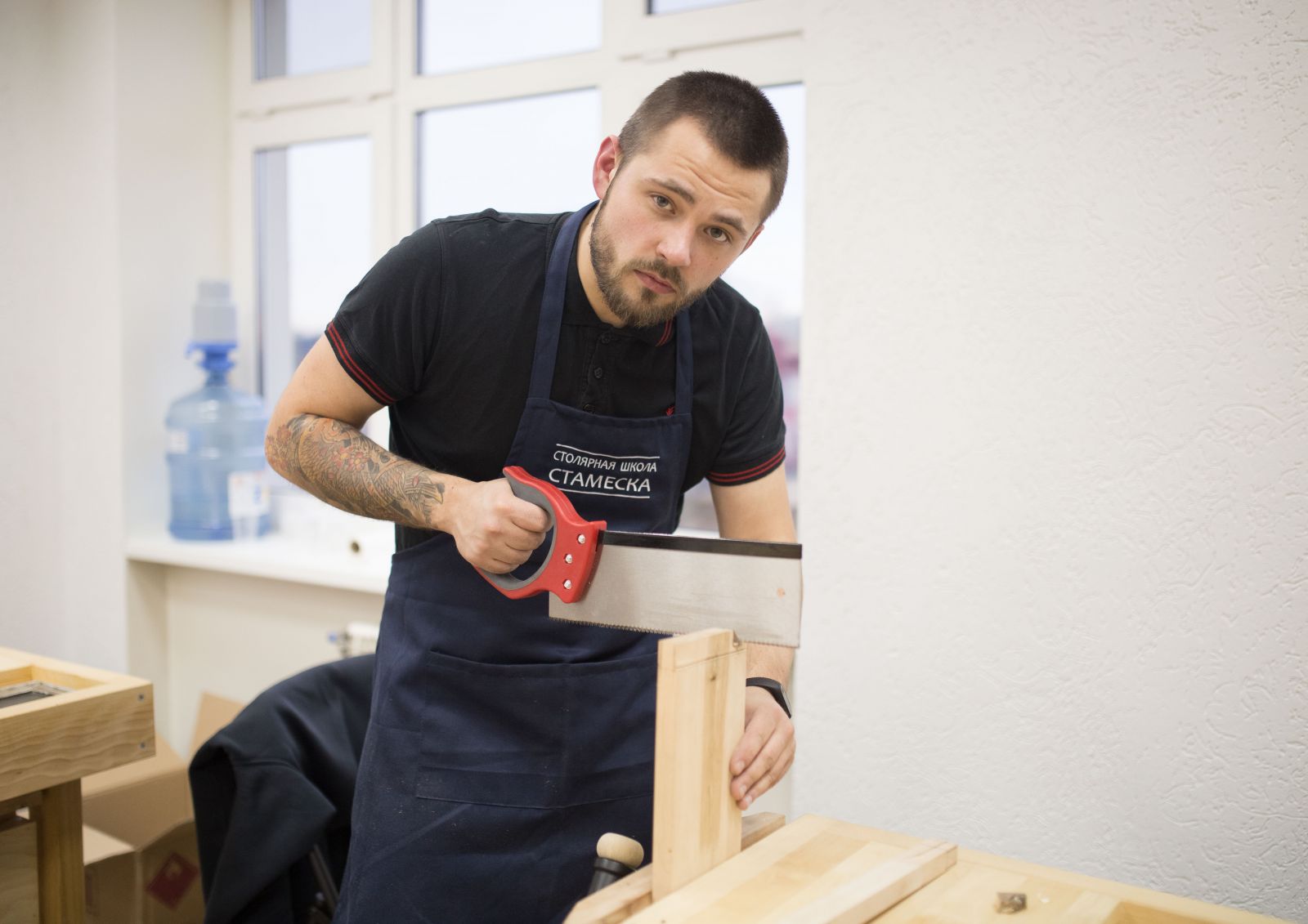 Люди очень разные и по возрасту, и по мотивации. Они приходят обучаться столярному делу по разным причинам. Есть ученики, которые хотят освоить профессию столяр и заниматься своим делом, однако не рассматривают вариант обучение в ПТУ. Для других это просто хобби. Человек не хочет связывать с этим жизнь, а ему интересно вечером что-нибудь помастерить после работы, расслабиться. Например, среди наших учеников есть обеспеченные люди, которые не рассматривают столярное дело, как источник дохода, но им важно сделать сыну хорошую кровать своими руками.