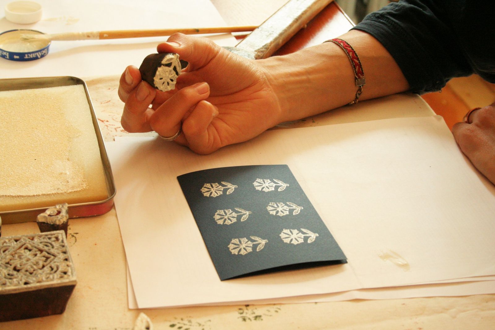 Трэба добра даглядаць штампы, звяртаць увагу на тое, каб яны добра прасохлі, каб ў іх не заставалася фарба. Іначай якасць малюнка будзе кепская. Яшчэ ёсць метад нанясення фарбы, дзе замест штэмпельнай падушкі выкарыстоўваюць паралонавы валік у фарбе, якім “пракатваюць” штампы. Выкарыстанне малатка вельмі важна. Для тканіны - гэта нават прынцыпова, для паперы не зусім. Бо як раз пры груканні малатком па штампе фарба ўваходзіць у валокны. Таму тэхніка і называецца “набойка”, бо фарба літаральна ўбіваецца ў структуру тканіны.