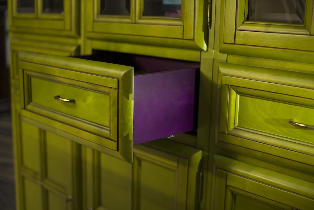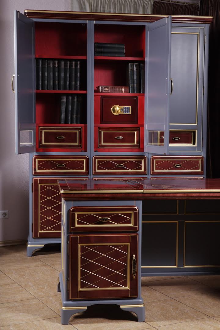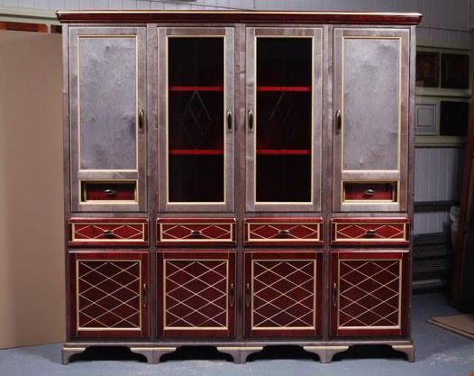– Еще есть «Маэстро» и «Сальвина», выполненные с отделкой матовыми лаками. Недавно появилась новая коллекция – «Софи». Она имеет в своей конструкции поверхности, которые покрыты глянцем. Специально под глянцевые поверхности мы разработали особую технологию нанесения красителя: что-то среднее между втиранием кистью и напылением. Сквозь него видно несколько слоев фактуры дерева. Мы называем это эффектом «глубокого проявления». Коллекция «Софи» выполнена в стиле роскошного ар-деко, возвращает нас в 20-ые годы 20 века. Похожую мебель можно увидеть в фильме «Великий Гэтсби». В каждой нашей коллекции есть какая-то фишка, изюминка, которой нет в другой. Например, в «Софи»все предметы конструируются индивидуально в соответствии с пожеланиями покупателя. В любом предмете можем сделать потайные ниши, дополнительные ящики на замках, специально рассчитанные по глубине и высоте полки.