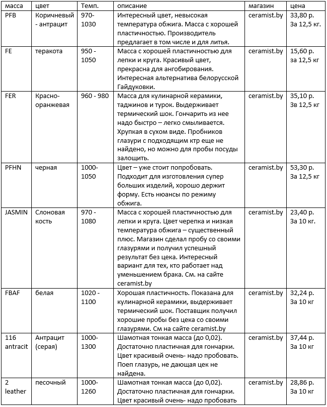 Злободневный вопрос лично для нас и, как нам известно, для любого начинающего и продвинутого керамиста, какую керамическую массу выбрать? За последний год появилось целых три интернет-магазина с товарами для керамистов и с двумя из них мы сотрудничаем: ceramik.by и ceramist.by. Это значит, что члены клубы могут получать скидки при покупке материалов и оборудования в этих магазинах. Ассортимент у магазинов разнообразен и очень интересен - и мы решили сделать для вас подарок.