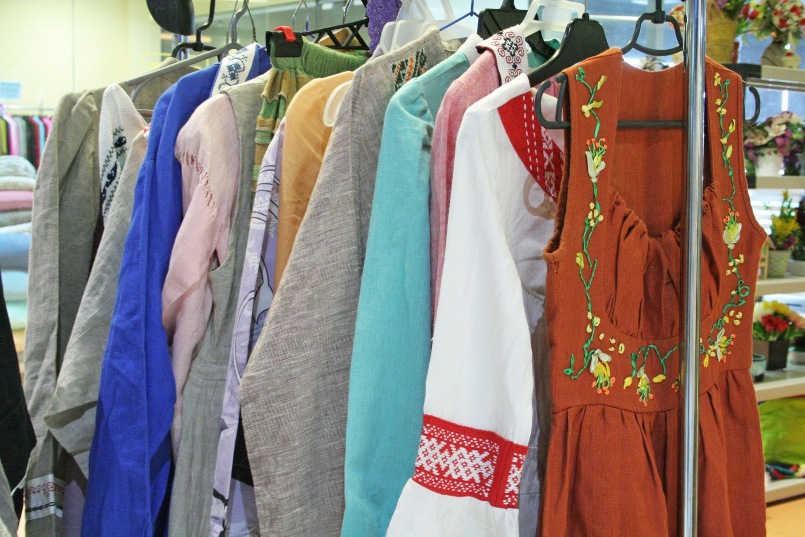Здесь можно было встретить мастеров, которые работают с разнообразными материалами: с кожей, со стеклом, с деревом, с войлоком, с металлом. Также были стенды с керамикой, натуральной косметикой, открытками ручной работы, игрушками, вязаными вещами и льняной одеждой, стилизованной под национальную.