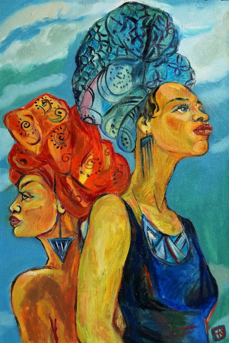 «А вот картина «Подруги» свежая… недавняя, летняя. Вдохновила поездка на Тенерифе с моей подругой - это близко к Африке. Идеи для своих картин я нахожу в путешествиях. Я много путешествовала по Европе, добралась до Индии. Верю, что и в Африке побываю вскоре»