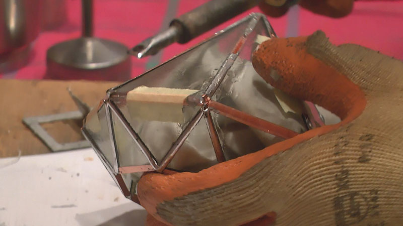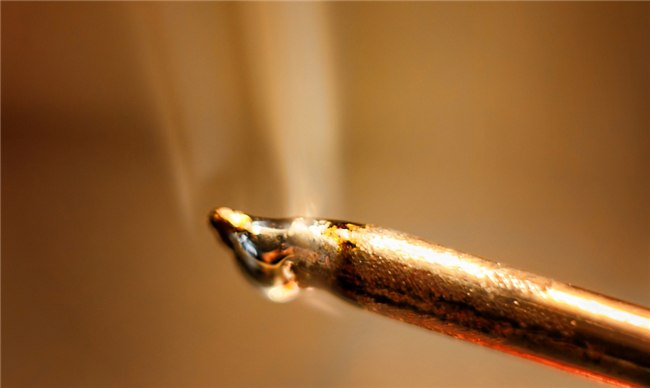 Ну и круглое скошенное. На момент написания статьи оно представляется мне наиболее оптимальным вариантом. Жар нагрева распределяется неравномерно и в жале не появляется никаких дыр. Уход за ним простой: при необходимости лишь зачистить напильником скошенную часть и снова можно работать. Им легко сажать капли, лудить круглую проволоку, да и плоские детали просто и удобно. Да, заливка листочков требует некоторой ловкости, но это тоже не критично и достигается путем нескольких упорных сосредоточенных тренировок.
