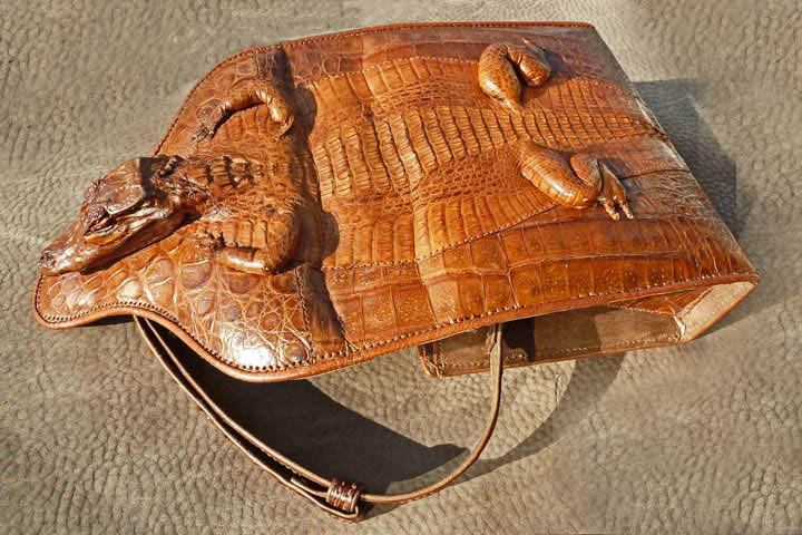 4. Крокодилья – изысканная кожа с красивым рисунком. Наиболее ценна брюшная часть шкурки из-за своей мягкости и легкости обработки. Бывает кожа аллигатора, крокодила, каймана. Ценится очень высоко.