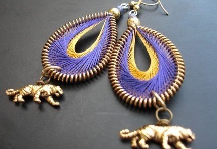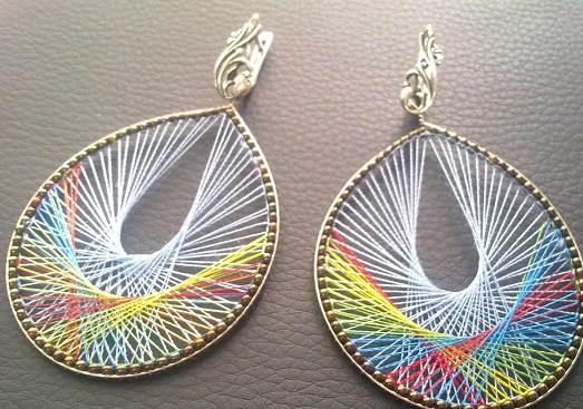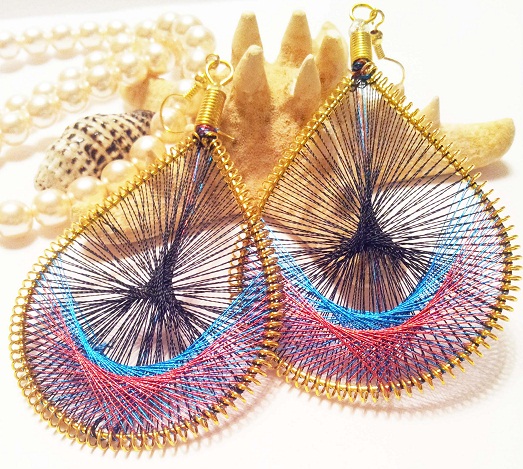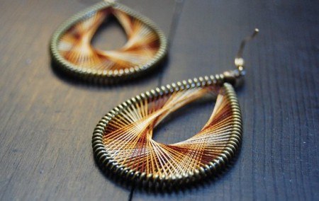 Вот и вся принципиальная схема работы! После завершения наматывания нити на каркас, у вас получается почти готовая серьга, на которую осталось только закрепить крючок-швензу. Его можно зацепить в месте соединения проволоки. Полученное украшение стоит дополнить бусинами, нитями других цветов, декоративными элементами различных форм. Посмотрите, как это делают различные мастера: