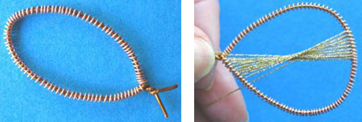 Первый этап – это наматывание на толстую проволоку тонкой ювелирной проволочки, которое необходимо производить с некоторым отступлением в 0,5-1 мм.
