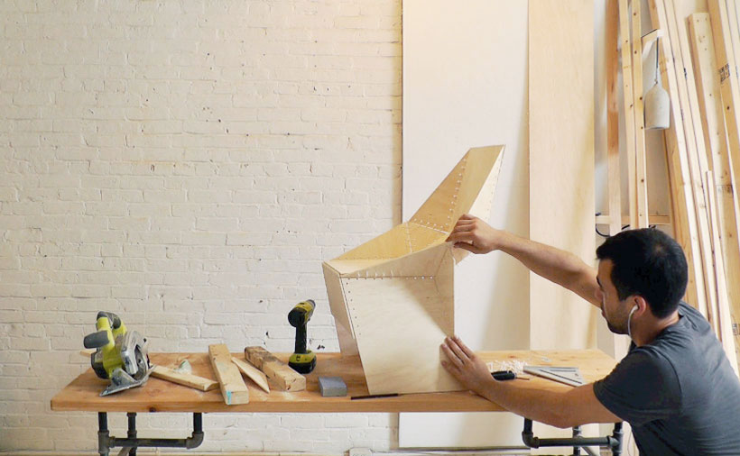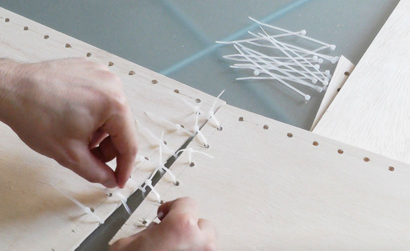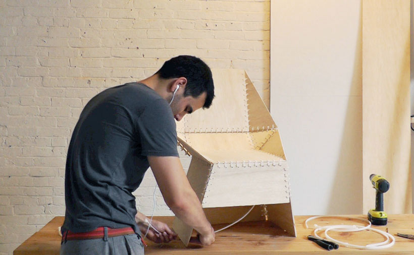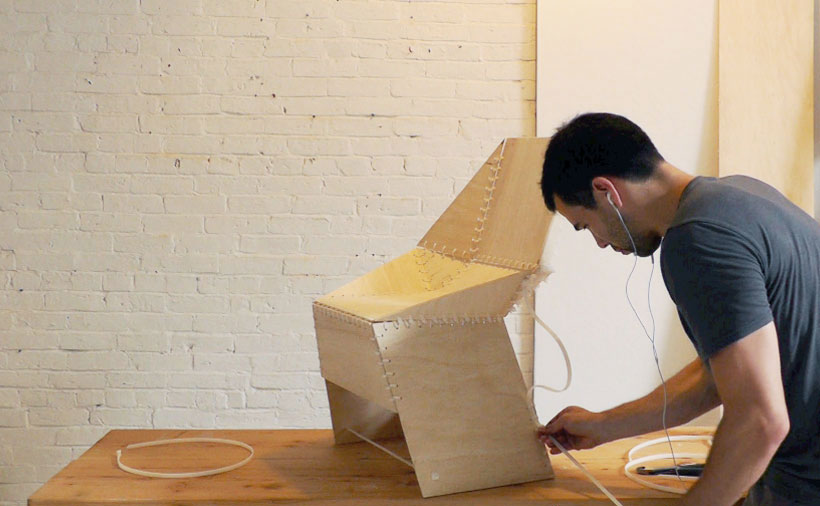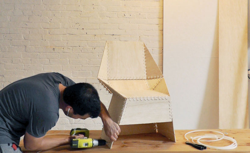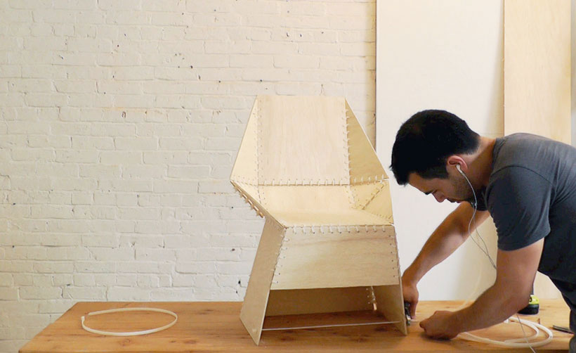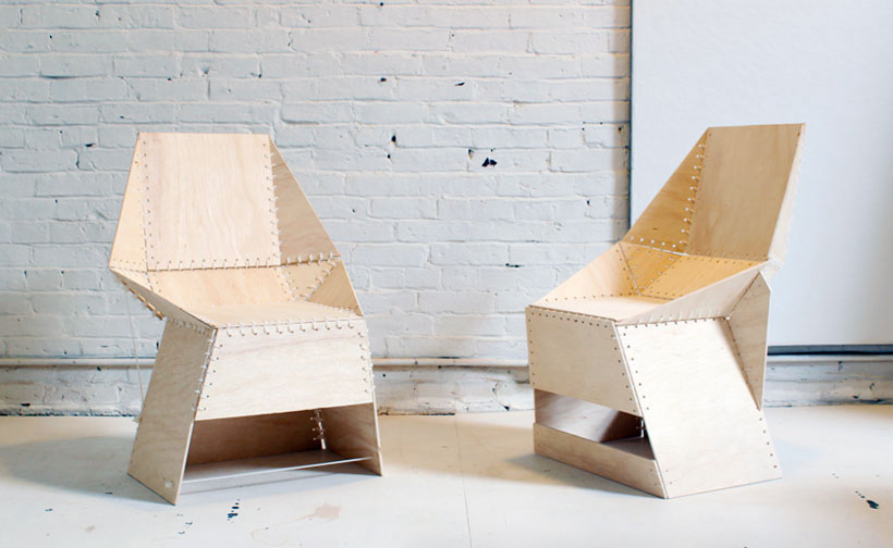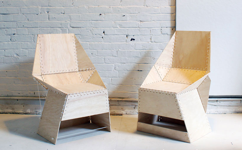 Сделать табуретку или скамейку намного проще, чем сделать стул. Всё дело в конструкции спинки, её наклоне, прочности и комфорте. К созданию стула можно подойти не стандартно и «сшить» нейлоновыми хомутиками из листов фанеры. Для создания такого стула используется простая фанера, например, из листа 4 на 8 можно сделать сразу два стула.