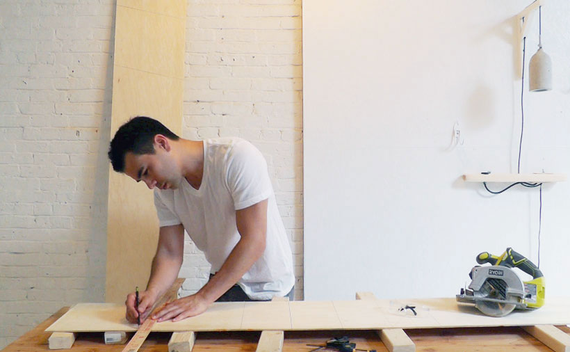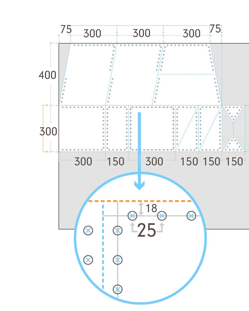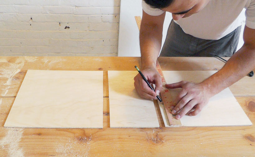 Отмечаем отверстия. Расстояние от края фанеры примерно 15 – 20 мм. Расстояние между отверстиями 25 мм.