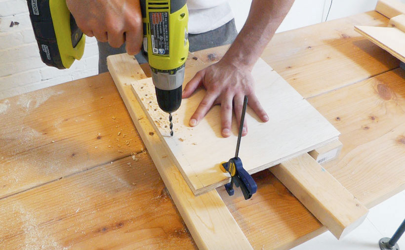 Сверлим отверстия, Можно прижать несколько деталей вместе и просверлить несколько отверстий в разных деталях одновременно. Для аккуратности используйте струбцину.